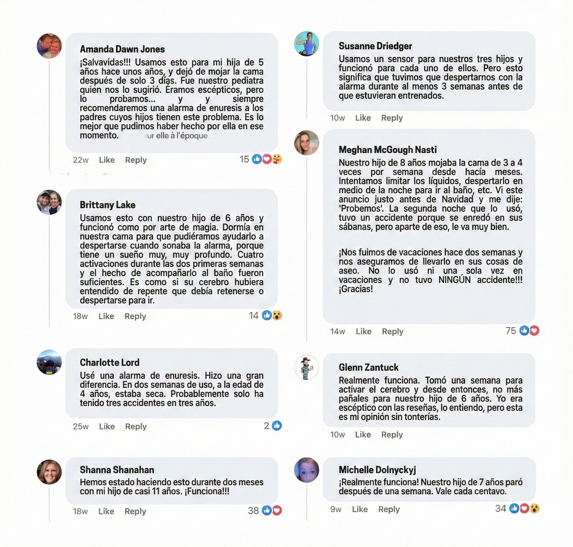 Mi hijo de 7 años seguía mojando la cama casi todas las noches. Lo intentamos todo: despertarlo por la noche, pañales, chinches… nada funcionó. Estuve a punto de consultar a un especialista. Vi un anuncio de DodoGuard y decidí probarlo, aunque no me convenció del todo. En tan solo dos semanas, los resultados fueron impresionantes. Empezó a despertarse con la alarma, luego sin ella. Ahora duerme profundamente todas las noches.