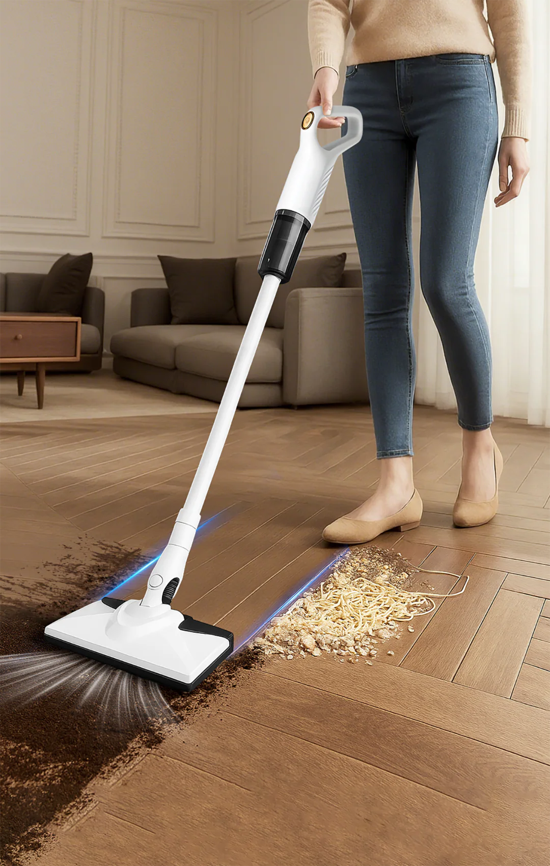 Con ella, puedes limpiar debajo de los muebles, en lugares altos como cortinas y lámparas, y usarla como aspiradora de mano para coches y sofás.