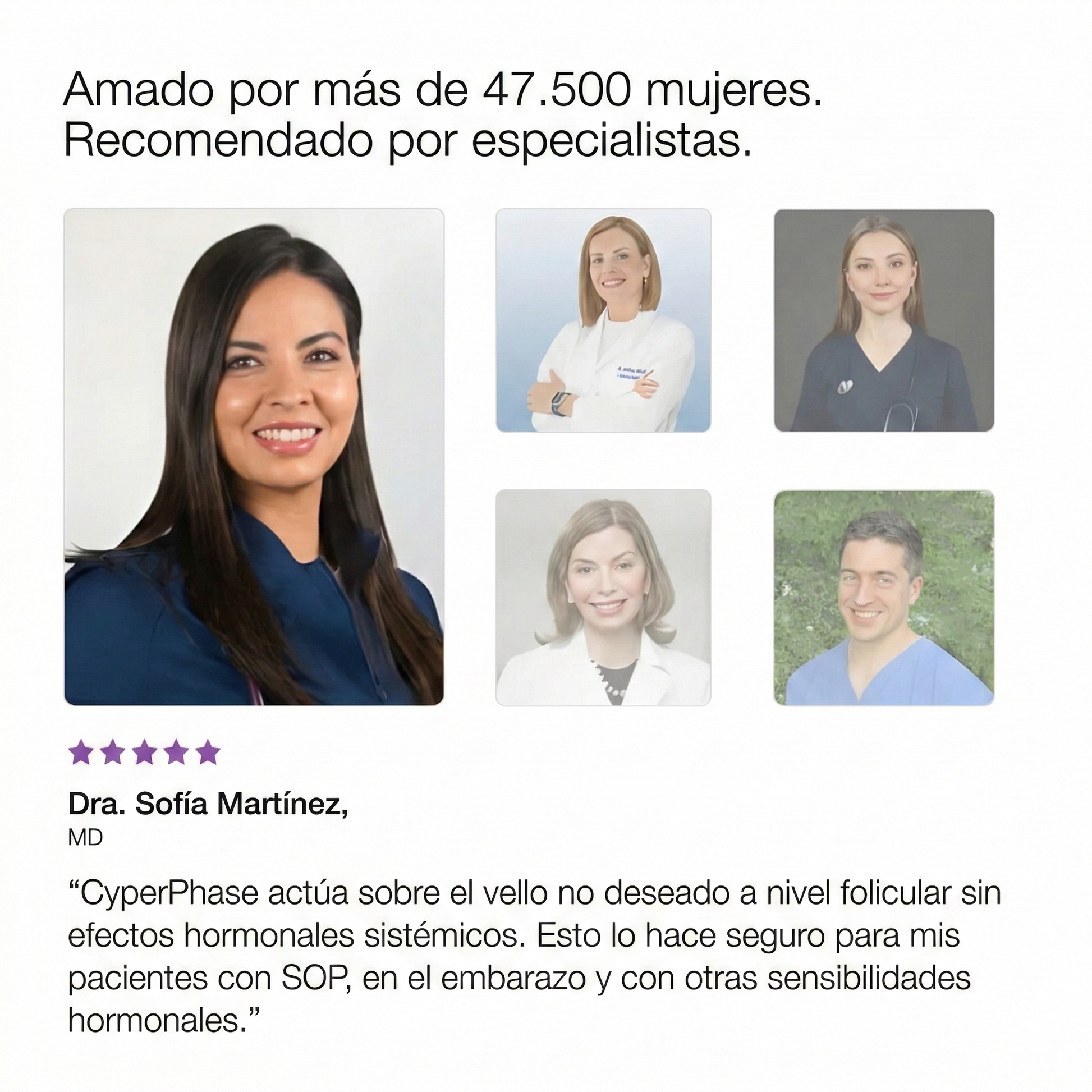 Después de seis semanas con CyperPhase, el vello es casi invisible y mi piel por fin se ha regenerado.”
