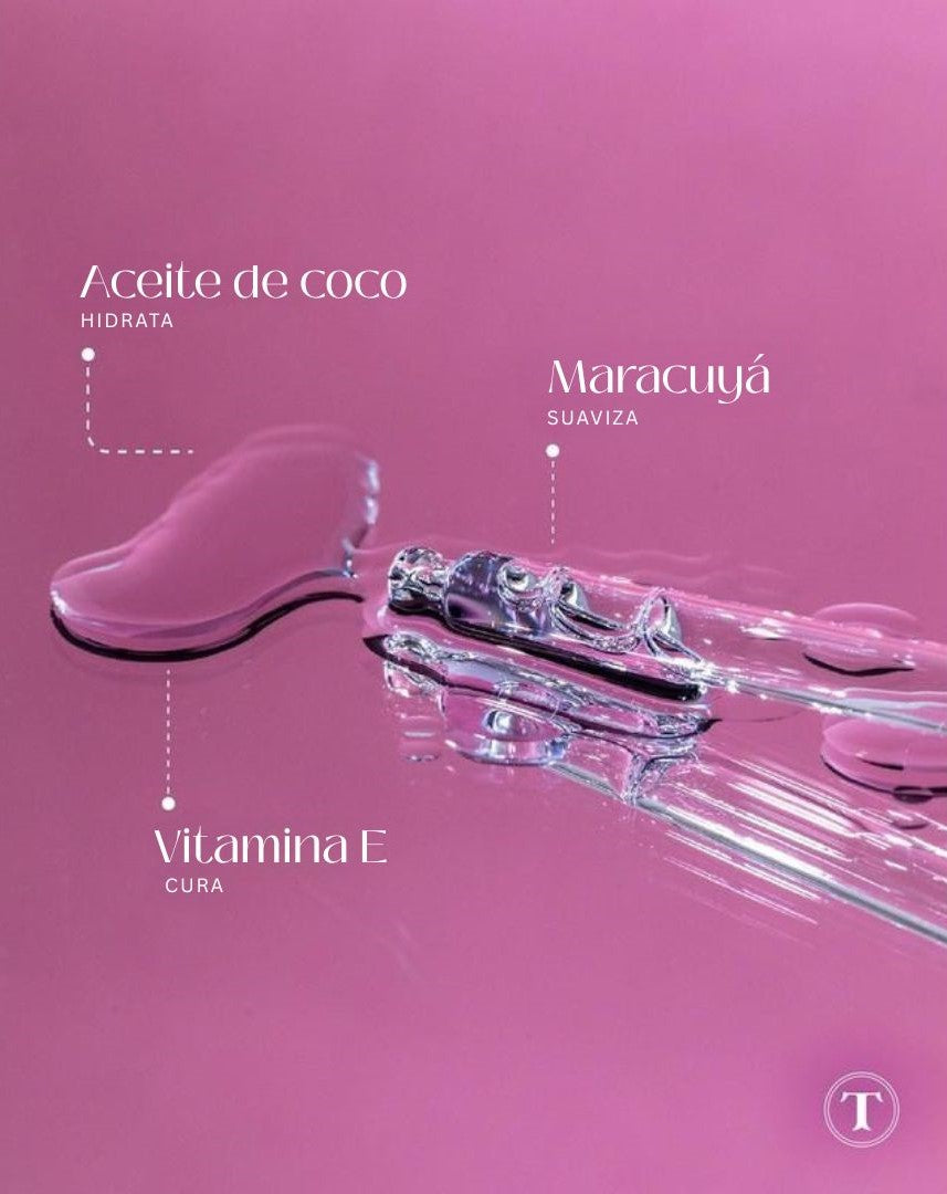 El maracuyá contiene una alta concentración de nutrientes esenciales aptos para el rejuvenecimiento de la piel: riboflavina, caroteno, vitamina C y vitamina A potencian la elasticidad, retienen la hidratación y ayudan a mejorar la apariencia de las líneas de expresión.