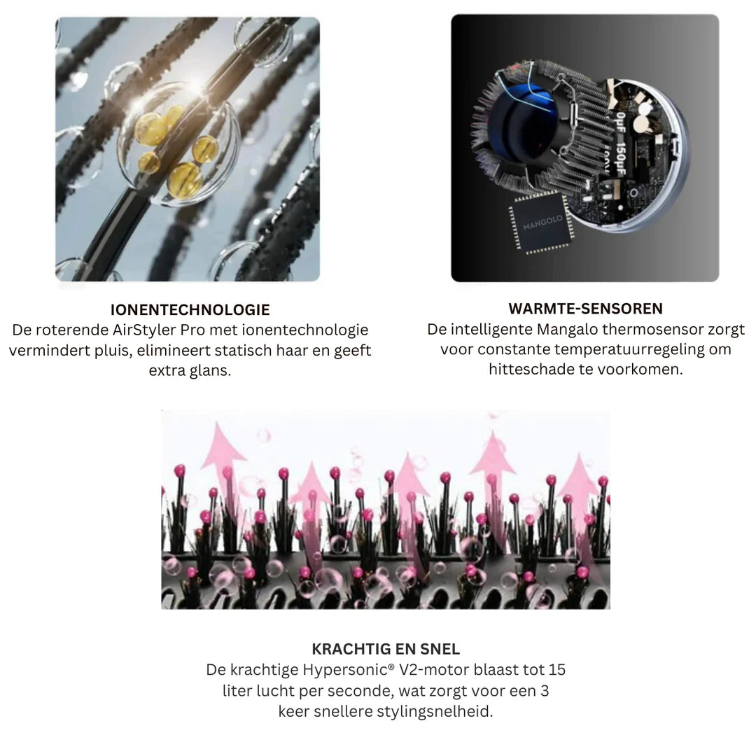 ¡El Rotating AirStyler Pro™ es la solución ideal! En solo minutos, puedes transformar tu look y lucir un cabello voluminoso y brillante, sin el estrés de las herramientas de peinado tradicionales.